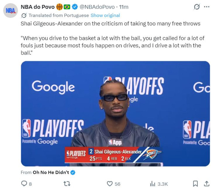 17罚25分引热议! SGA回应: 冲篮下多造犯规多 美球迷调侃裁判帮扶